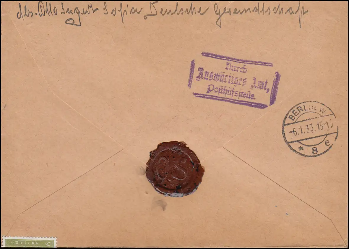 Ebert-Frankatur sur R-Lettre de l'ambassade de Sofia Ministère des Affaires étrangères BERLIN 6.1.1933
