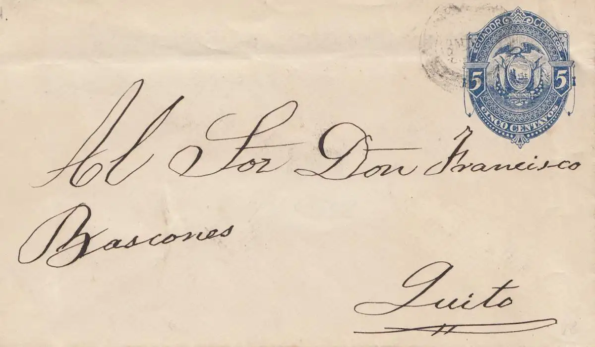 Équateur: old letter to Quito, 140x81mm