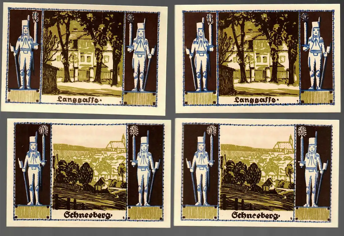 Edition d'urgence de la ville de Schneeberg/Langgasse 1921, 4 billets par 50 pfg