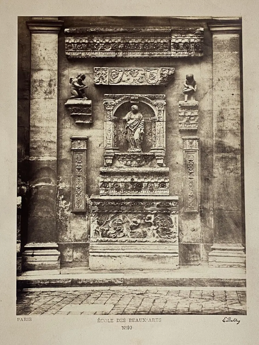 Tirage albuminé d'époque de la façade de l'Ecole des Beaux-Arts de Paris