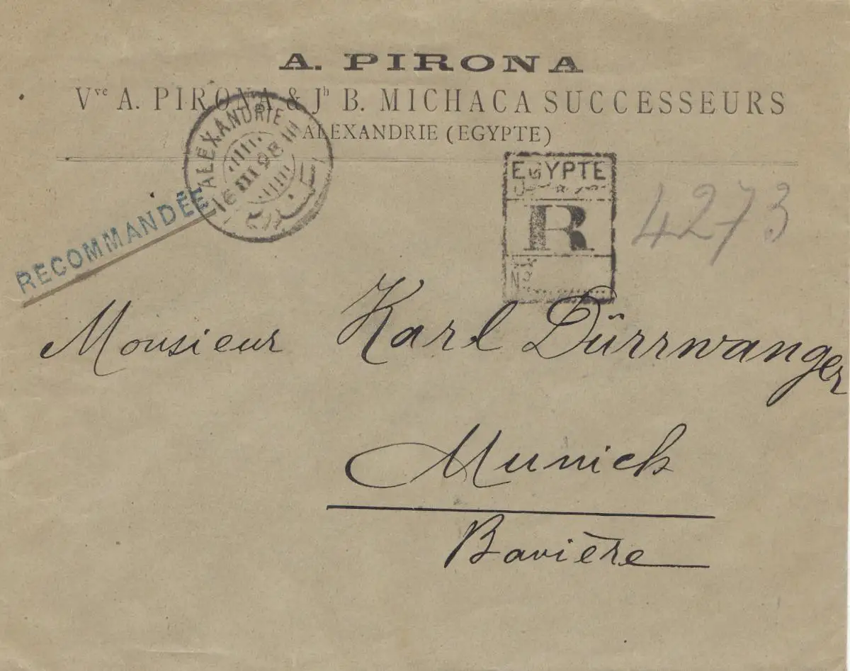 Egypte/Egypte: 1898 Inscription Alexandrie à Munich