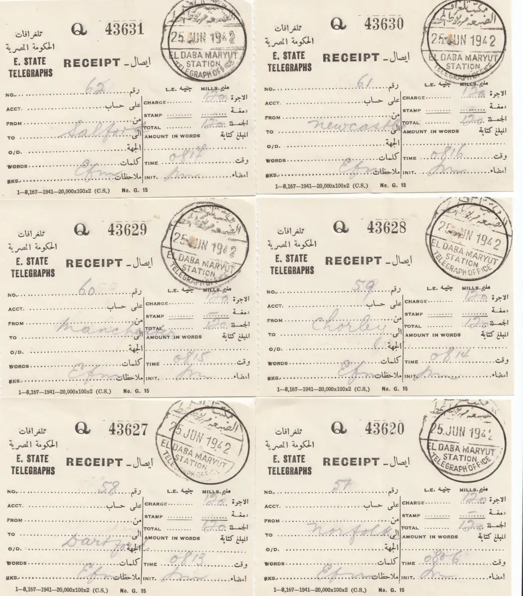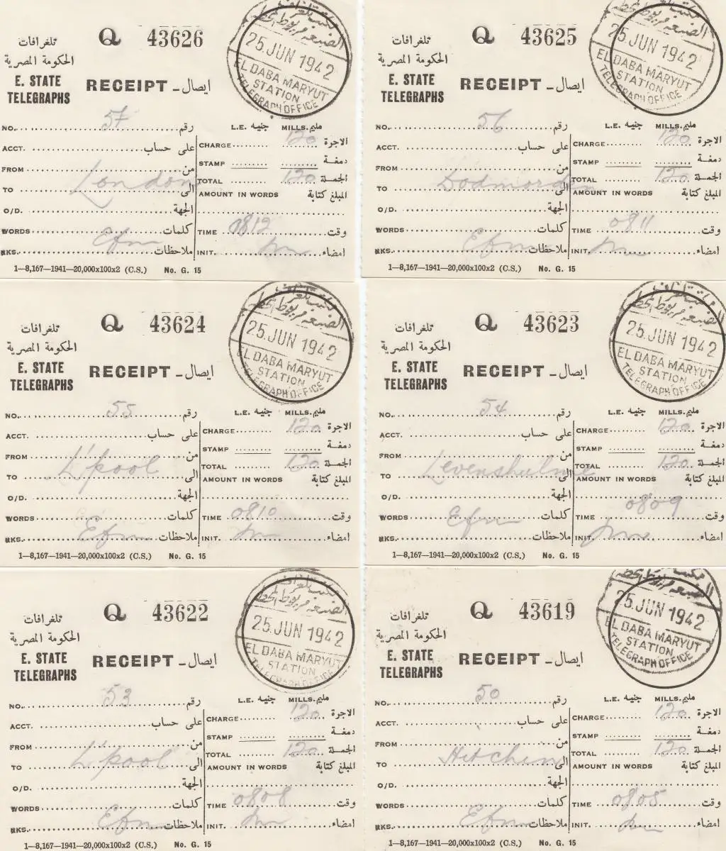 Egypte/Egypte: 1942: 12x Receipt El Daba Maryut avec couverture télégram