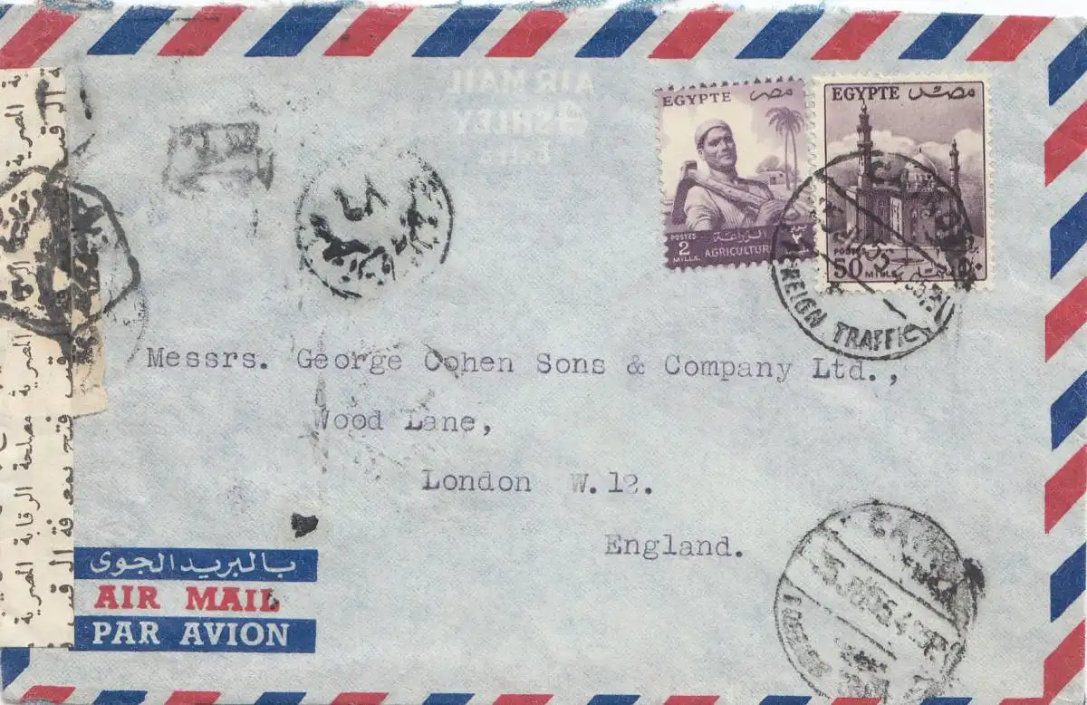 Egypte/Egypte: 1955: courrier aérien avec censure à Londres