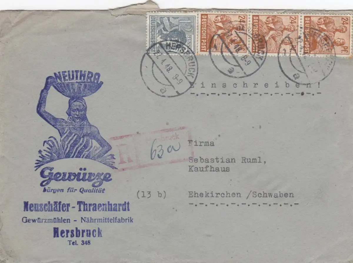Inscription 1948 Hersbruck, supplément alimentaire pour les Églises conjugales