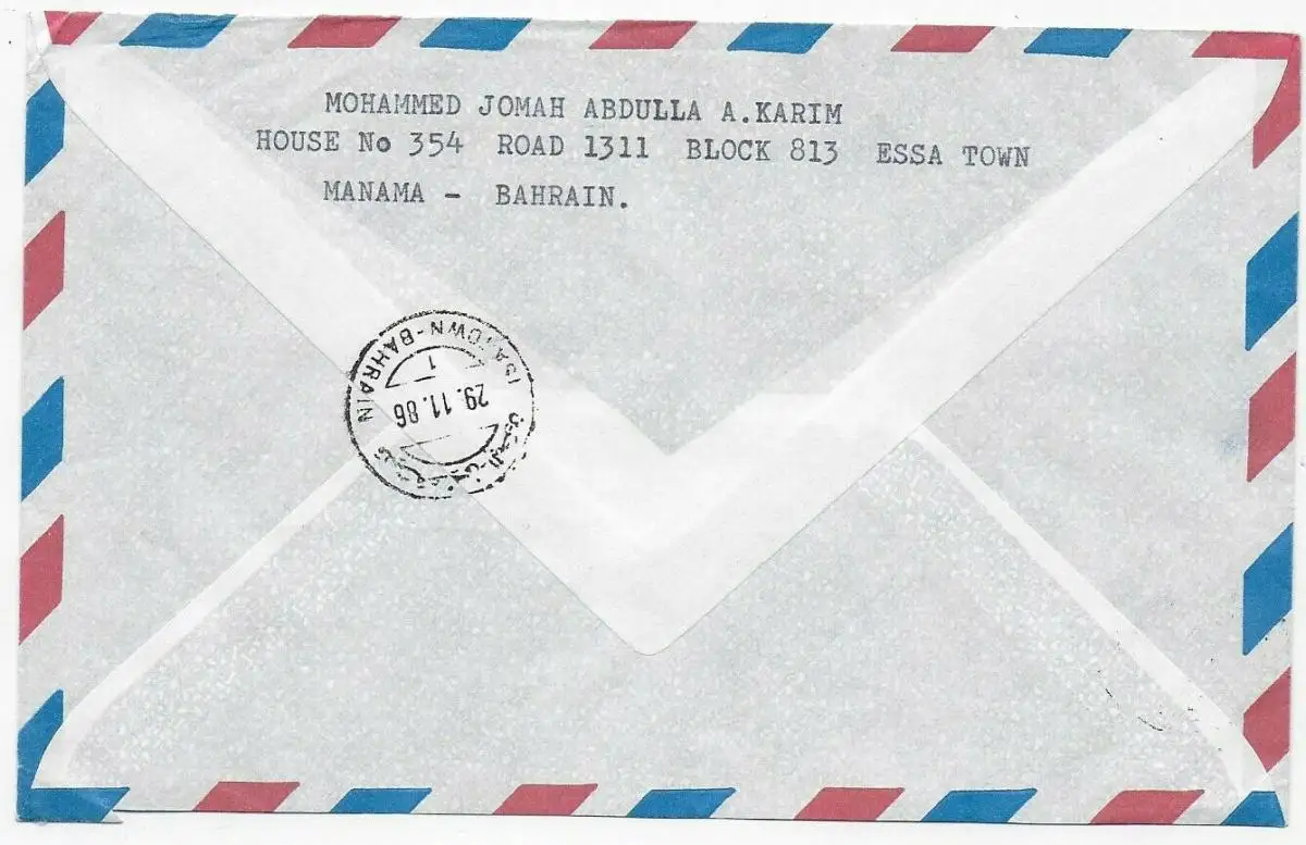 Enregistrer Bahreïn, poste aérien pour Mayence, 1986