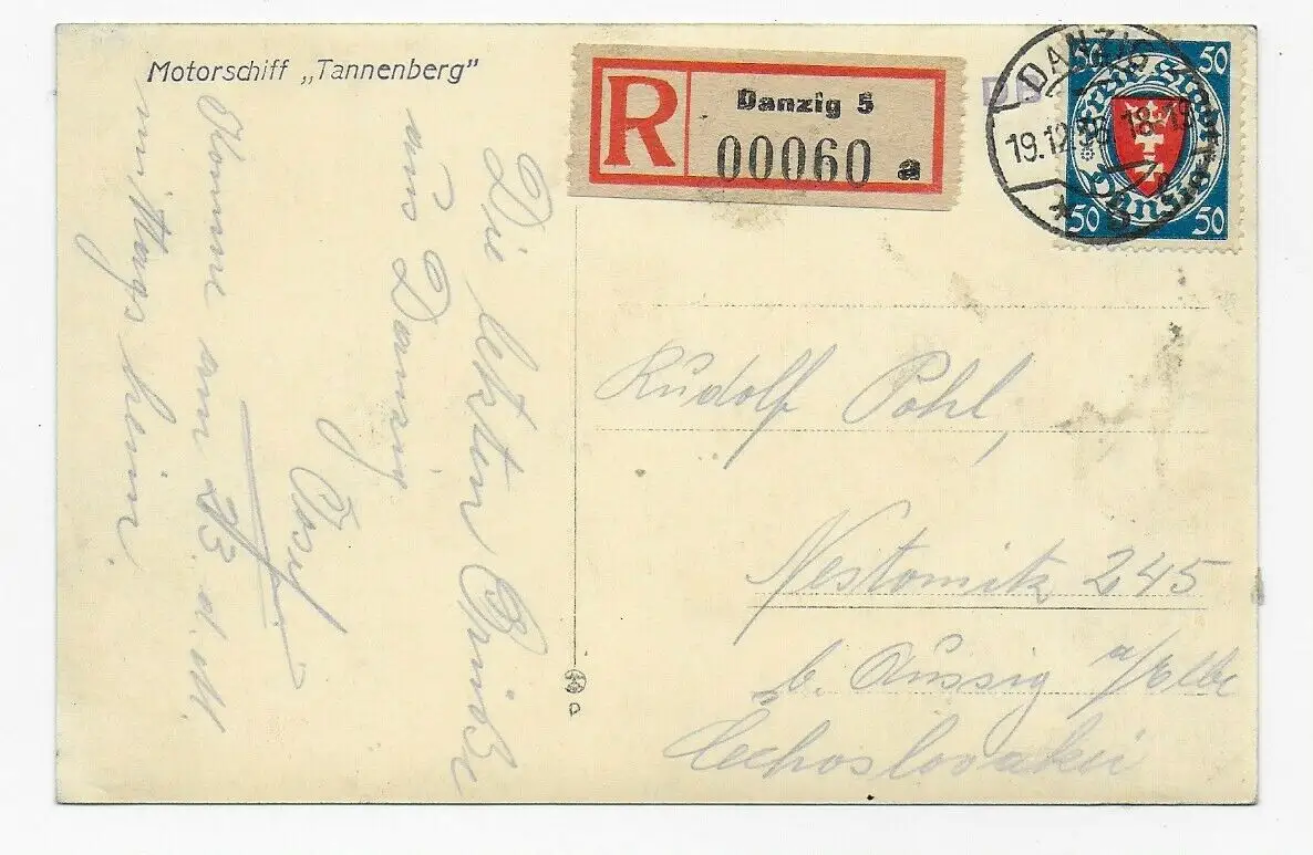 Enregistrer Gdansk 1936 à Nestomitz/Aussig avec bateau à moteur Tannenberg