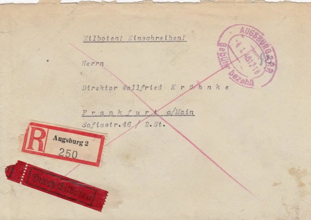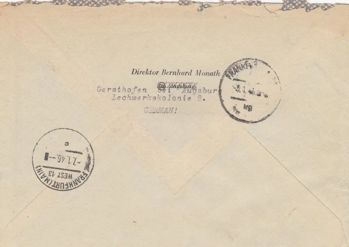 Inscrivez-vous Eilbote Gersthofen Augsburg 1946, frais payés, après Francfort/M