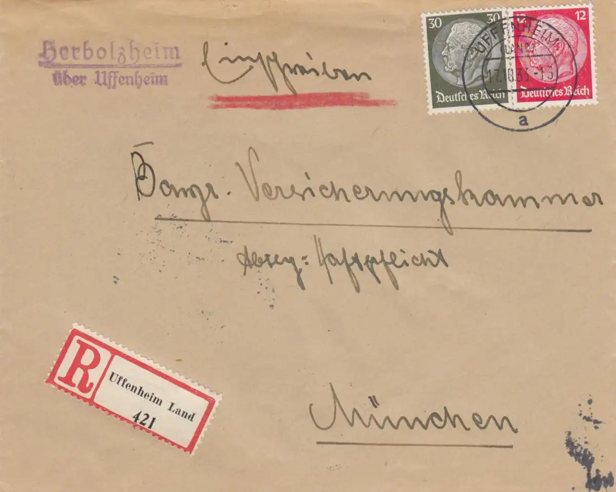 Inscription Herborosheim sur Uffenheim à Munich 1933