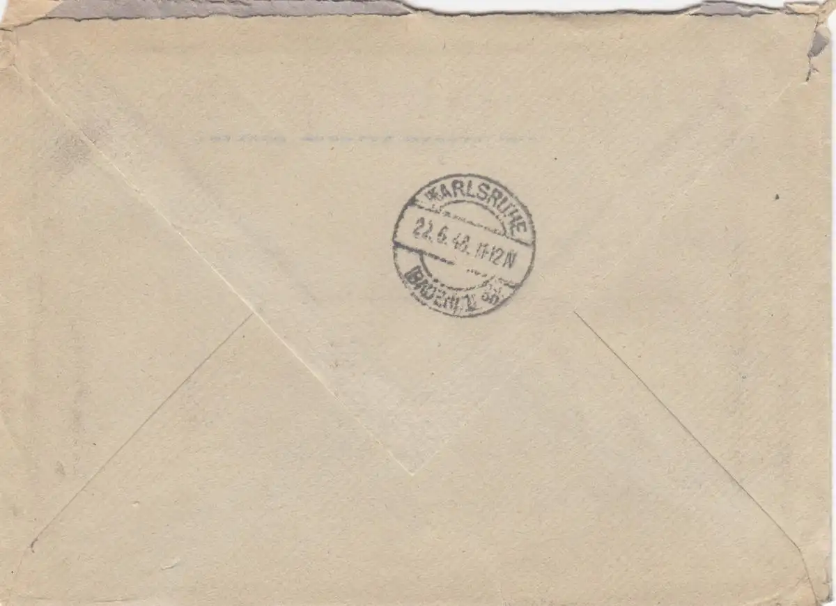 Rescription Weinheim/Bergstraße vers Karlsruhe 1948