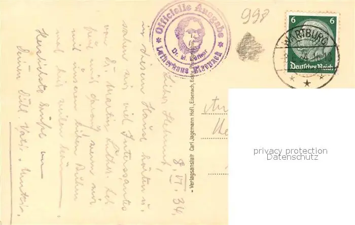 Eisenach_Thueringen Lutherhaus Historisches Gebaeude Fachwerkhaus Eisenach Thueringen postalisch gelaufen 1934 Erhaltung siehe scans [FriedD77] Frierer