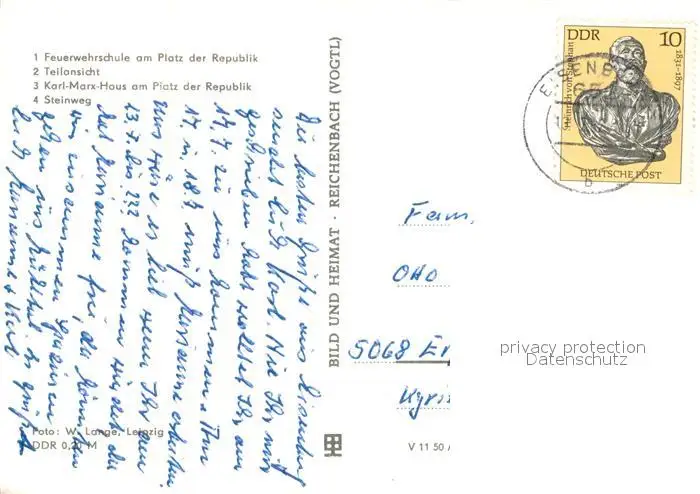 Eisenberg_Thueringen Feuerwehrschule Platz der Republik Teilansicht Karl Marx Haus Steinweg Eisenberg Thueringen postalisch gelaufen 1982 Erhaltung siehe scans [FriedD77] Frierer