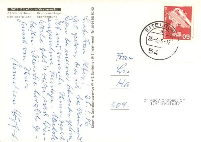 Altes Rathaus Brunnenanlage Minigolf Sporkenburg Eitelborn postalisch gelaufen 1986 Erhaltung siehe scans [WerneD78] WernPID7