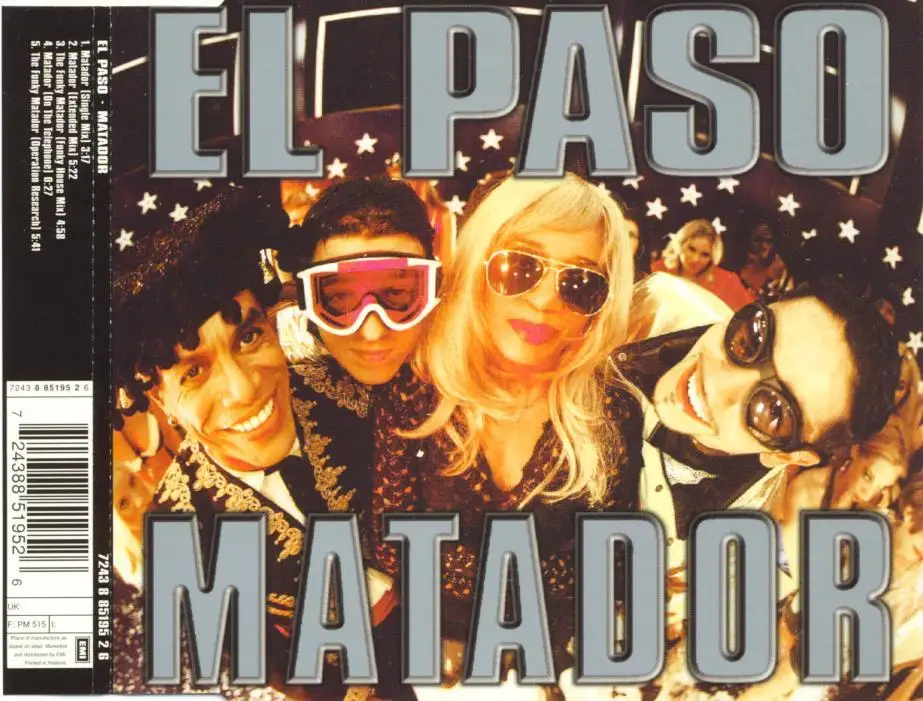 CD Single El Paso - Matador, Garland Jeffreys coverversion, état CD M- Hülle M; Fabriqué en Germany 1998 EMI 8 85195 2, Tracks [Single Mix] 3:17, [Ext. Mix ] 5:22, The Funky Matador [Funkiy House Mix], 4:58, (On The Telephone) 0:27, the Franky Matador [Opération Research] 5:41