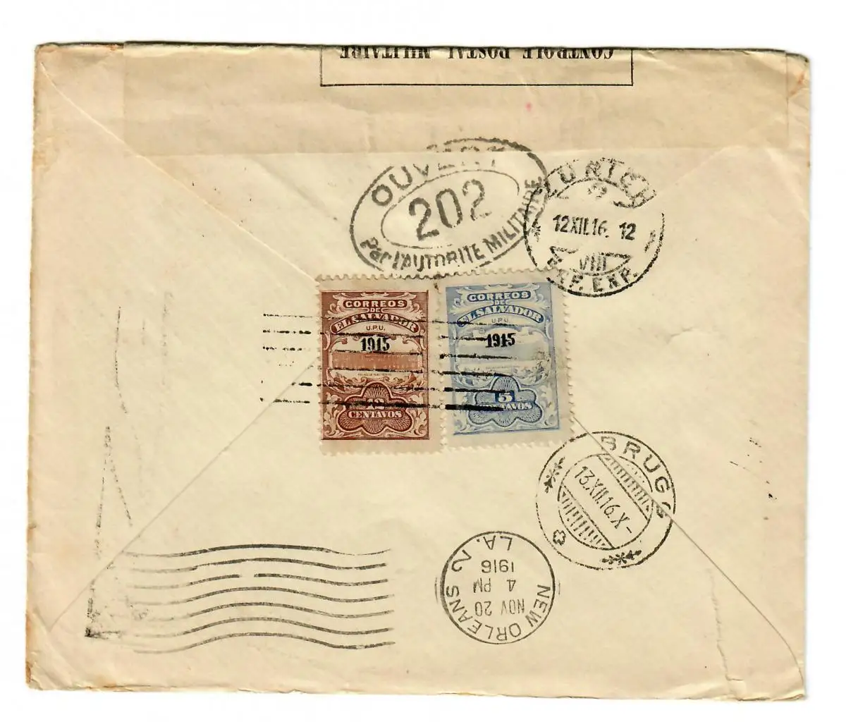 El Salvador: 1916 à Zurich, ouverture de la censure militaire sur la Nouvelle-Orléans, Brugg