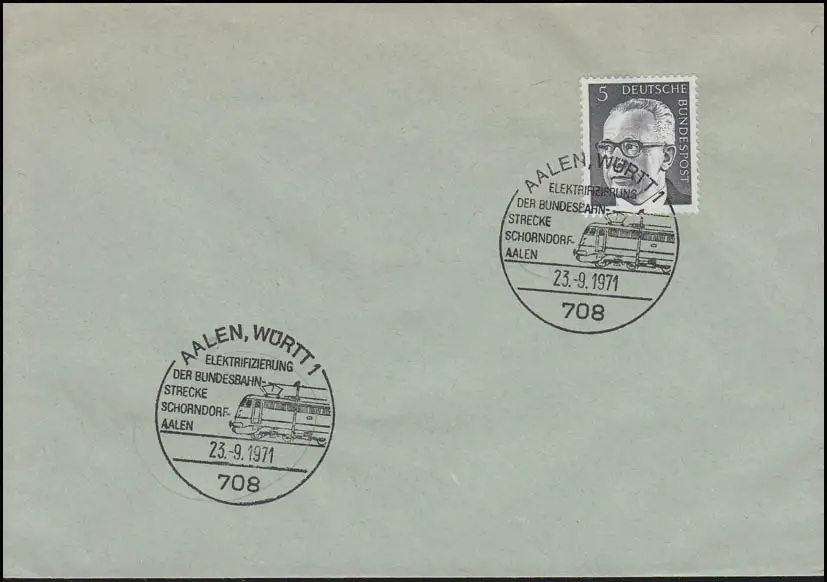 Elektrification Route Schorndorf - Aalen, Lettre SSt Aalen Rail 23.9.1971