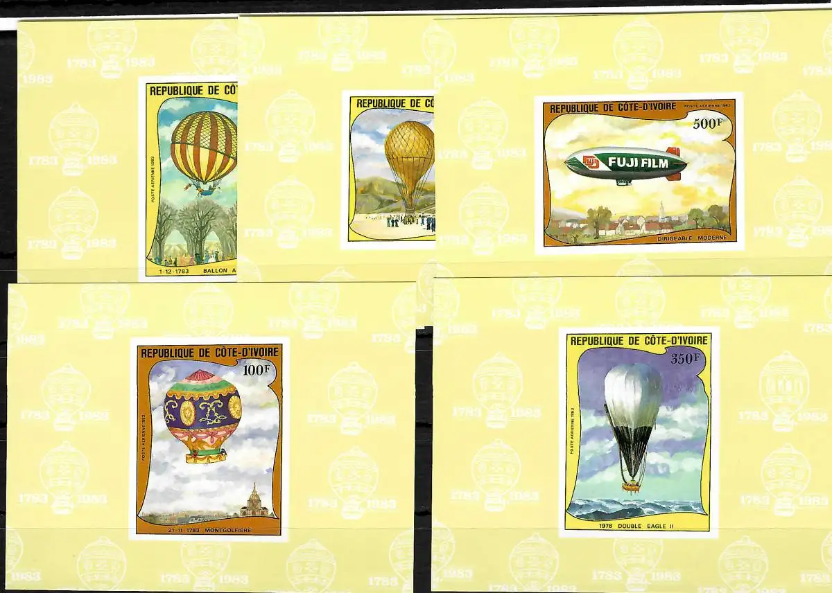 Côte d'Ivoire: 200 ans d 'aviation, 5x blocs de luxe #772-776, post-fraîchissement