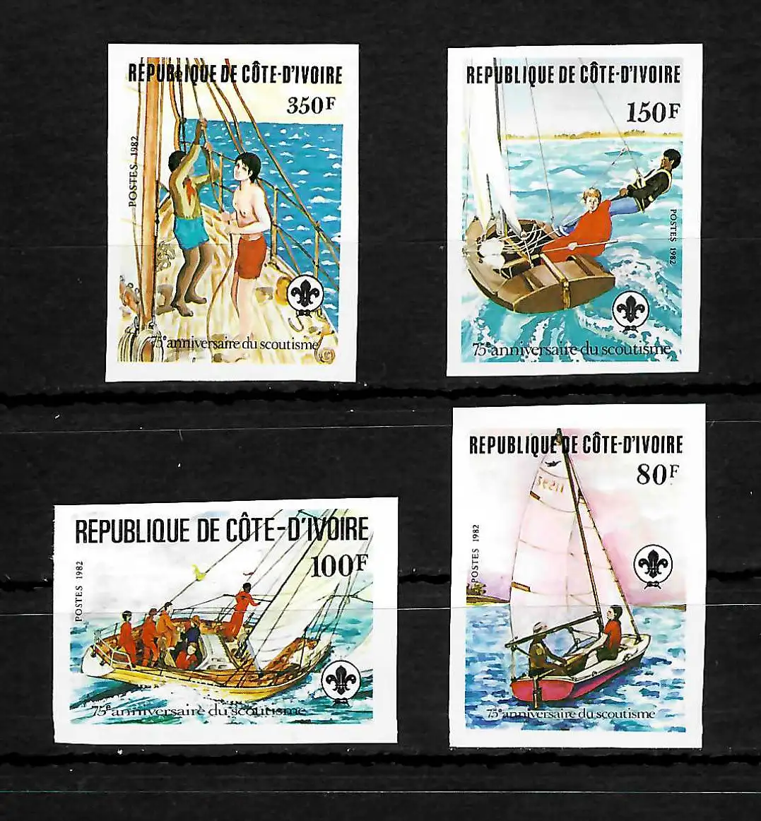 Côte d'Ivoire: 75 ans de scout, Boys Scount #728-731B, frais de port