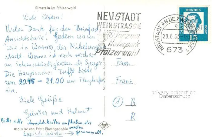 Elmstein Panorama Elmstein postalisch gelaufen 1963 Erhaltung siehe scans [WerneD78] WernPID7