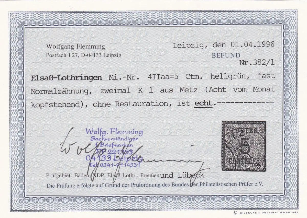 Alsace-Lorraine: Min° 4 II aa = 5 Ctm, BPP résultats
