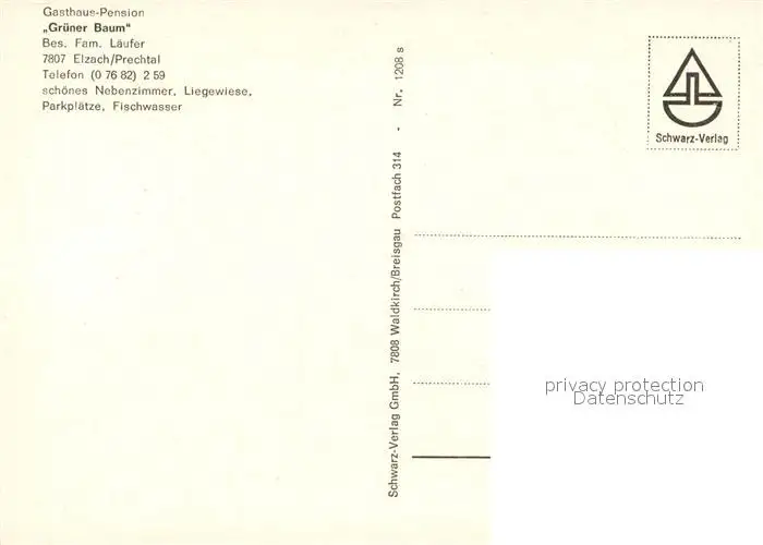 Elzach Gasthaus Pension Gruener Baum Elzach postalisch nicht gelaufen nach 1965 Erhaltung siehe scans [WerneD78] WernPID7