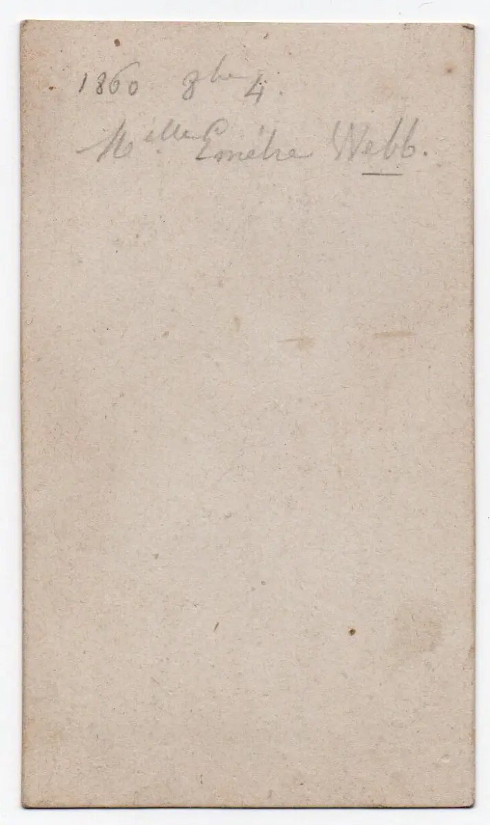 Emily Webb est l'une des pionnières féminines de la photographie portraitiste. Elle commence par assister son père, et devient propriétaire de son propre studio de photographie en 1864 au 302 Market Street à Wilmington, Delaware, USA, où elle exerce son art à travers des portraits exceptionnels d'individus, de familles avec enfants, d'animaux de compagnie, et même de poulets!