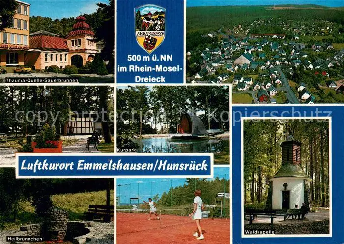 Emmelshausen Thauma Quelle Sauerbrunnen Fliegeraufnahme Kurpark Heilbruennchen Tennisplatz Waldkapelle Emmelshausen postalisch gelaufen 1992 Erhaltung siehe scans [WerneD78] WernPID7
