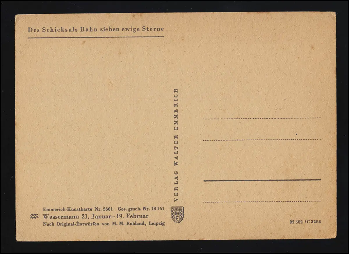 Emmerich carte d'art 2601 Verseau, conception M.M. Rohland, verset, inutilisé
