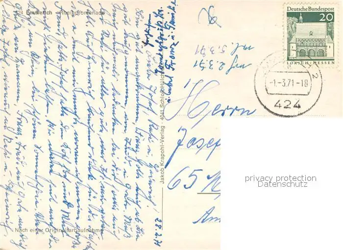 Emmerich_Rhein Rheinpromenade Emmerich Rhein postalisch gelaufen 1971 Erhaltung siehe scans [FriedD77] Frierer