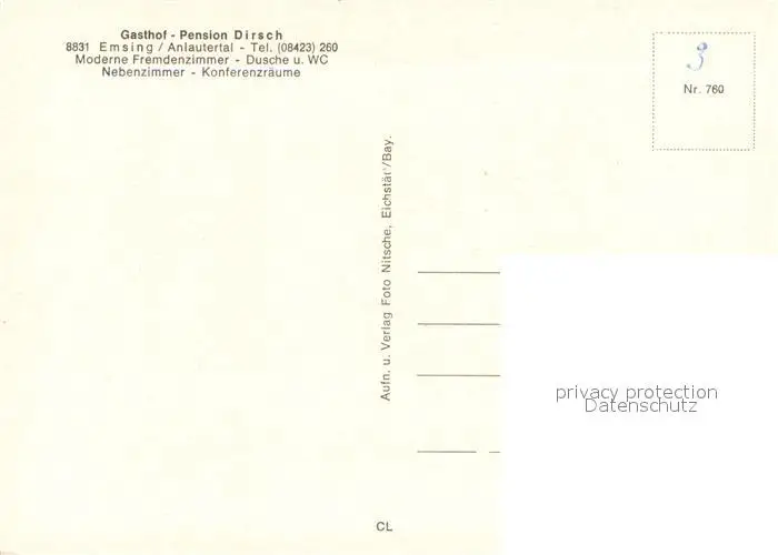 Emsing_Titting_Oberbayern Gasthof Pension Dirsch im Anlautertal Gaestezimmer Restaurant Emsing_Titting_Oberbayern postalisch nicht gelaufen nach 1965 Erhaltung siehe scans [FriedD77] Frierer