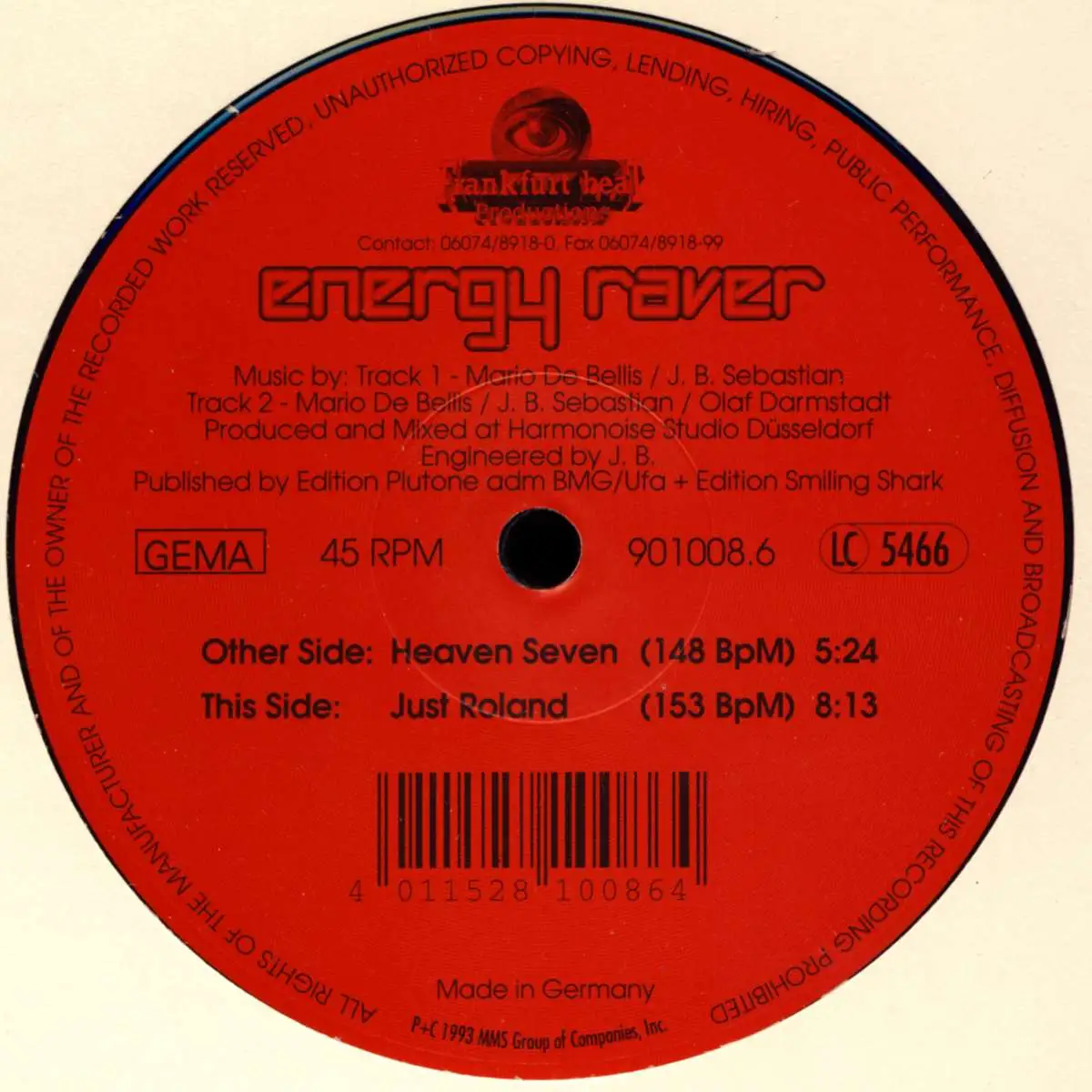 12" Maxi Energy Raver - Heaven Seven, Unitsover der Dischengesellschaft, État Platte VG+ Hülle VD+; Fabriqué en Allemagne 1993 Frankfurt Beat 901008.6, Tracks Heaven sept 5:24, Just Roland 8:13