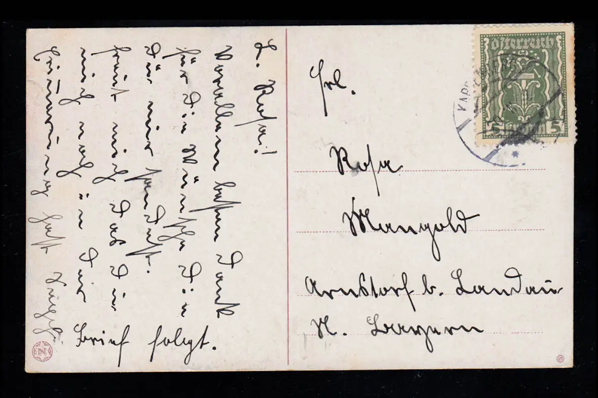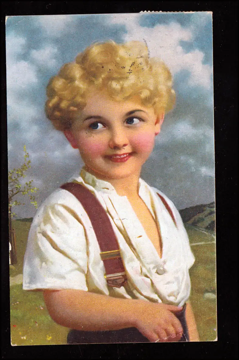Enfants-AK Garçon souriant avec boucles blondes devant la campagne, KAPFENBERG 1922