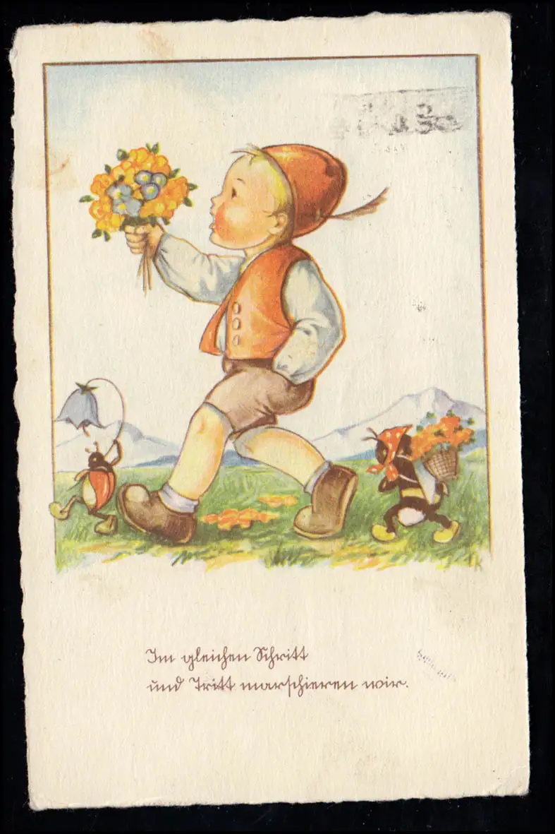 Enfants-AK Singender Garçon avec la scarabée et l'abeille en marchant, VIENNE 23.9.1939