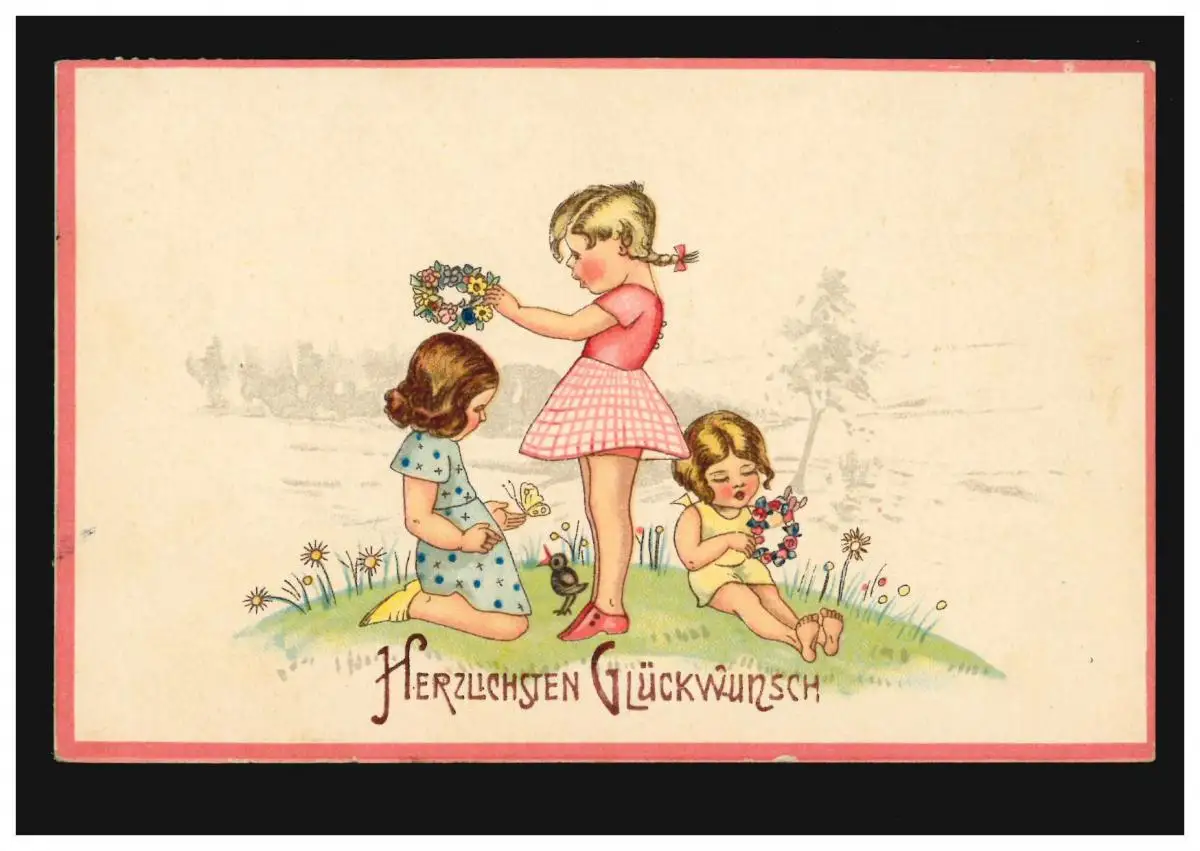 Enfants-AK Trois filles en jouant des couronnes de fleurs, CHAMUTOV / KOMOTAU 14.10.1938