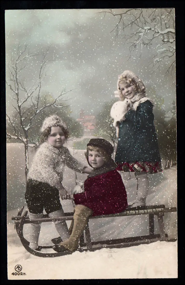 Enfants-AK Trois filles sur une traîneau, carte postale locale BRESLAU 1910