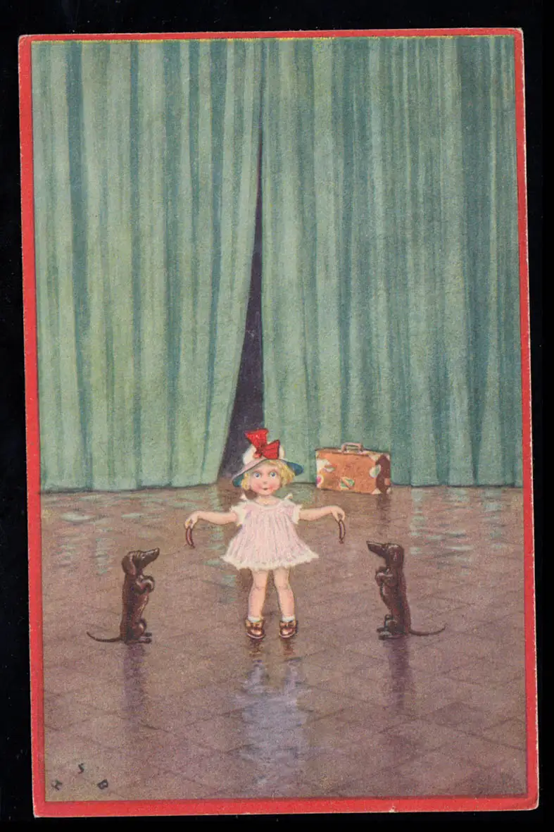 Enfants-AK Votre première apparition avec deux chiens, couru vers 1920