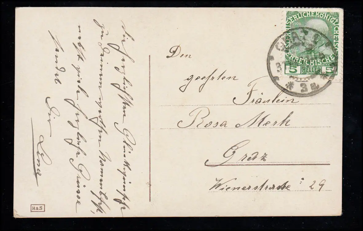 Enfants AK fille avec chapeau et chien sur le banc de stationnement, GRAZ 31.8.1911