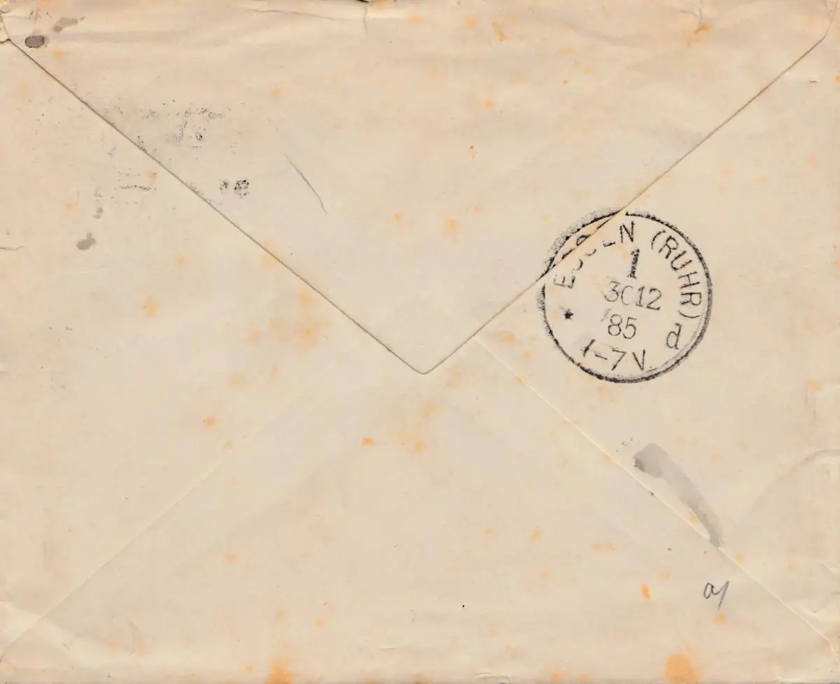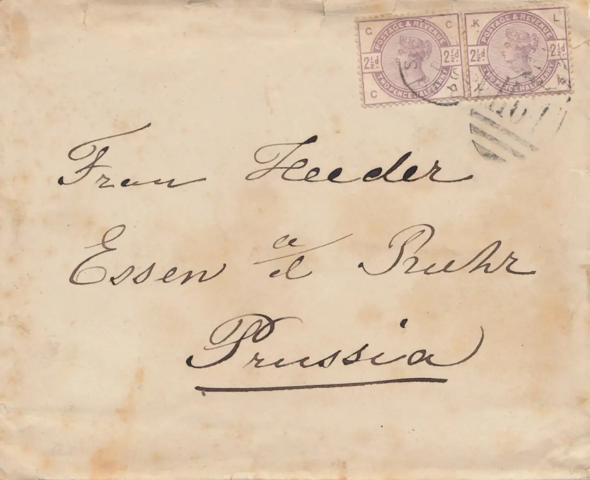 Angleterre: 1885: Lettre pour Essen.