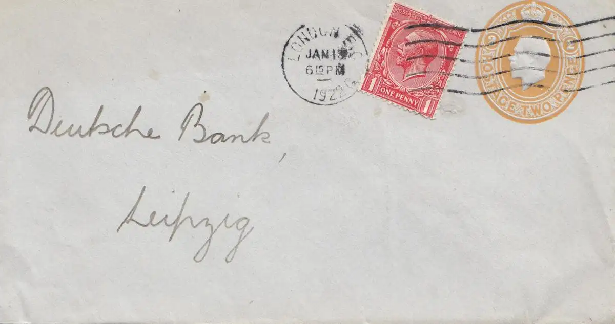 Angleterre: 1922: Lettre de Londres à Leipzig