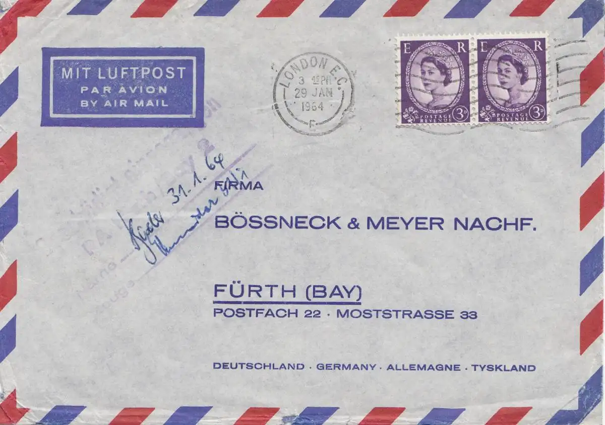 Angleterre: 1964: Poste aérien Londres vers Fürth