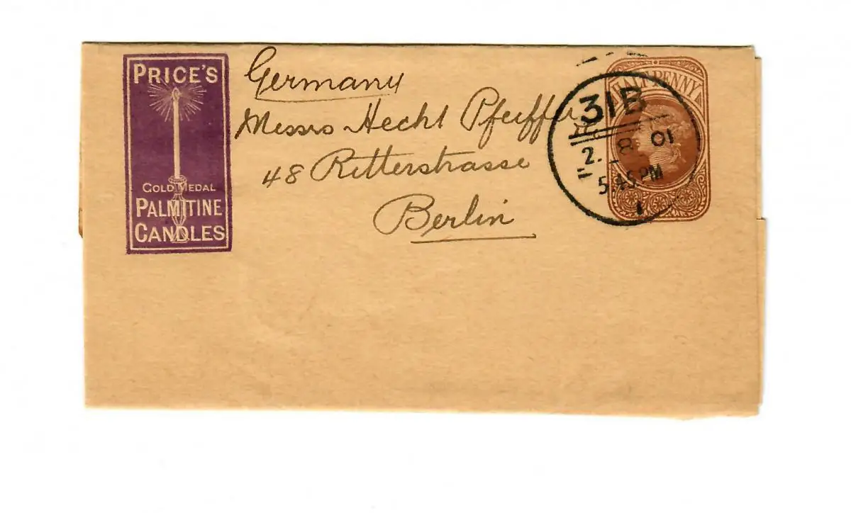 Angleterre: Lettre 1901 à Berlin: Palmitine Candles