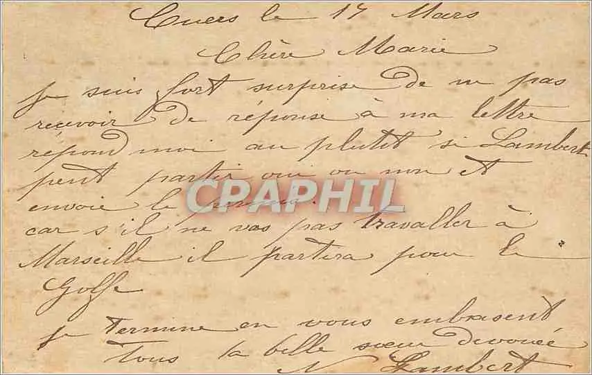 Entier Postal 10c Cad Cuers 1903 pour Marseille (n�804)