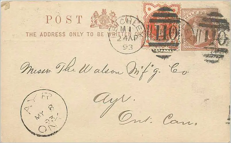 Entier Postal Postal Stationary Grande Bretagne Great Britain 1/2p + 1 1/2p Kechley to Ontario