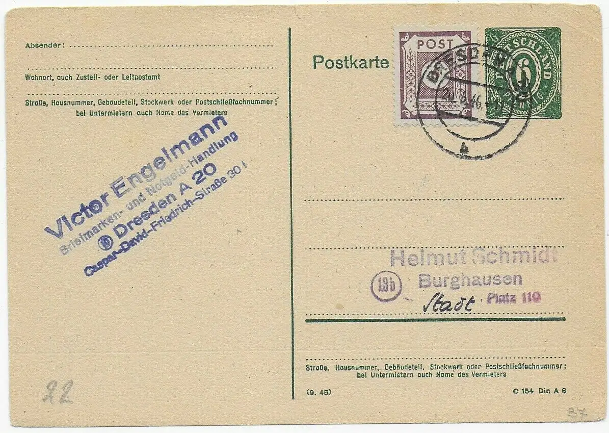 Entier entier Dresde en 1946 à Burghausen, dos blanc