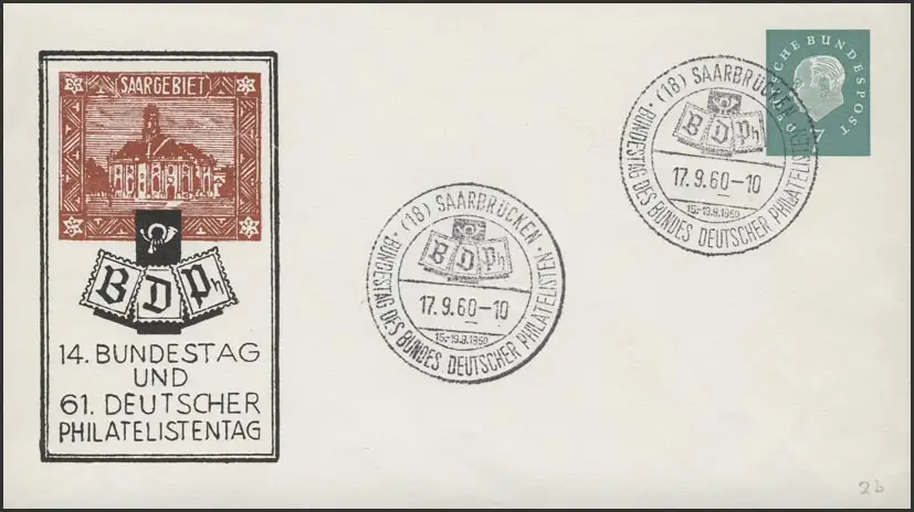 Enveloppe 7 Heuss II BDPh / hauteur environ 3,5 mm SSt 17.9.60