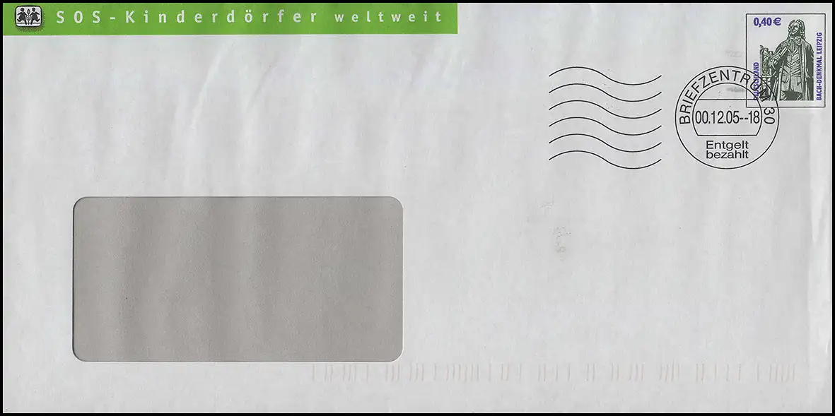 Enveloppe privée SOS Kinderdörfer: SWK Bach-Denkmal Leipzig BZ 30 - 00.12.05
