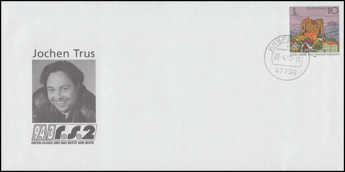 Enveloppe publicitaire WU 2 II Jochen Trus, abonnement, KREFELD 27.3.1999