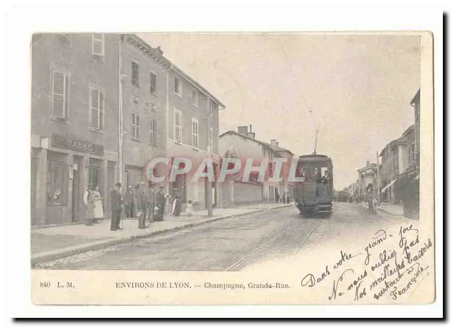 Environs de Lyon Cartes postales Champagne grande rue (train tramway)
