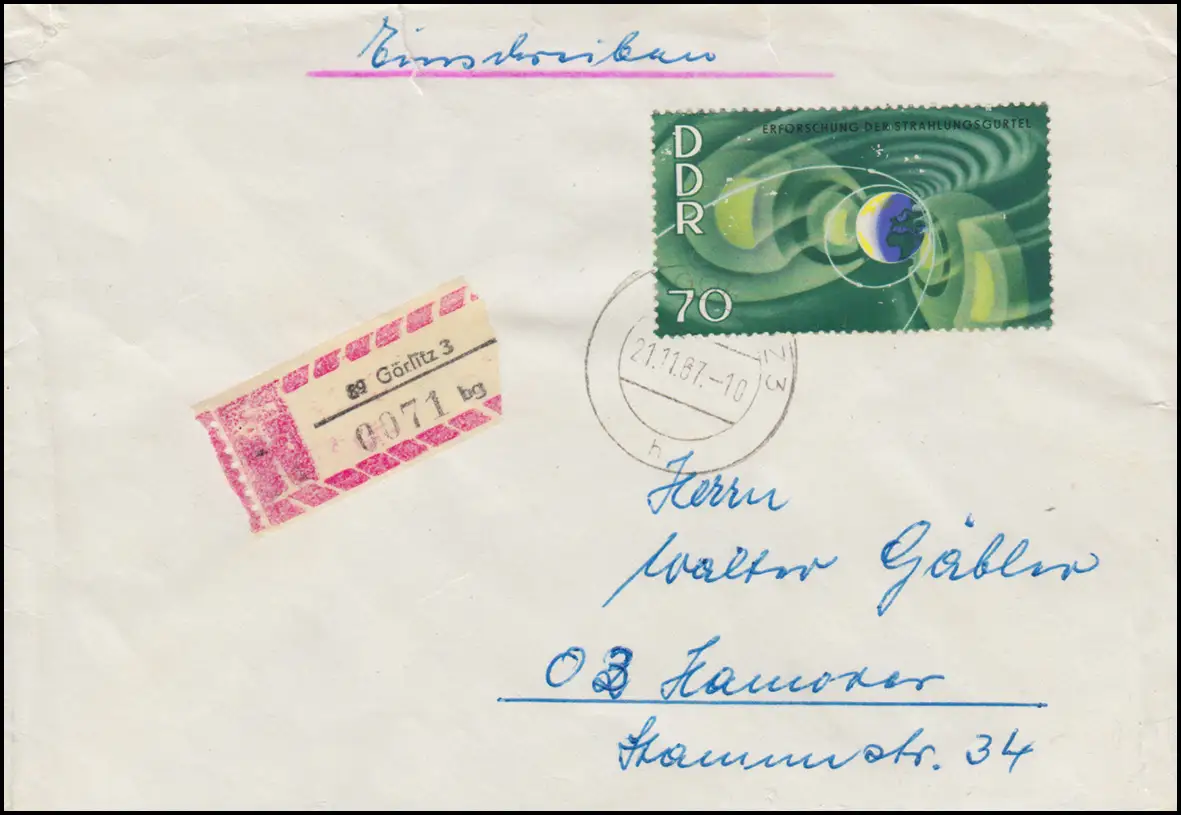 Envoi 1083 de Block 22 sur lettre R GÖRLITZ 21.11.67 à Hanovre