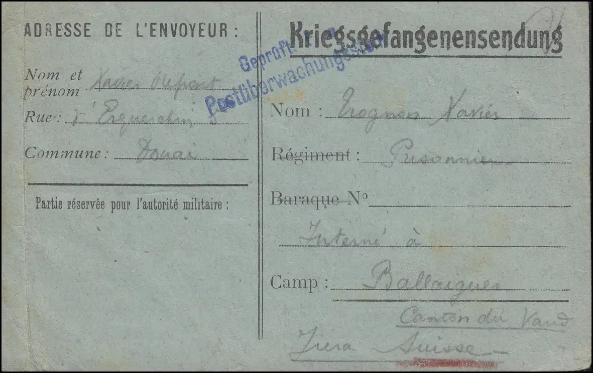 Envoi de prisonniers de guerre Testé ... Service de contrôle des postes, écrit 14.5.18