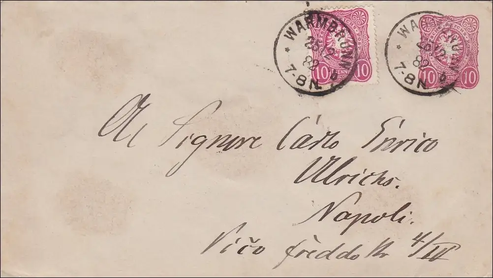 Envois de marchandises entières de Warmbrunn à Napoli 1882